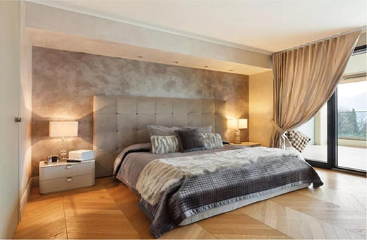 ▲ 絨類藝術(shù)涂料 背景墻絨類產(chǎn)品細(xì)膩,手法多變,為空間凸顯更多的層次感,也可以帶來意想不到的美感