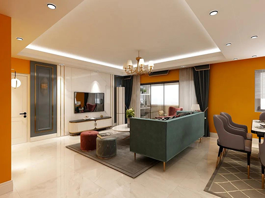 ?、苋钆???臻g中的主色彩不超過(guò)三種,并且所占比例不得少于20%,三色組合使用得當(dāng),往往可使空間效果、家庭氛圍醒目、溫暖。通常,我們可以采用相鄰色系搭配和互補(bǔ)取色搭配方法。例如: