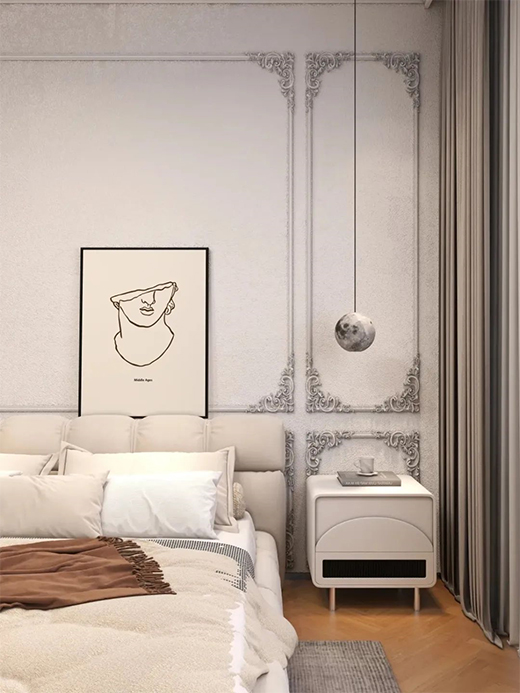 復(fù)古吊燈投射下配合著品味不俗的藝術(shù)畫裝飾,讓整個空間營造出繁而不雜,華而不奢的雅致氛圍。