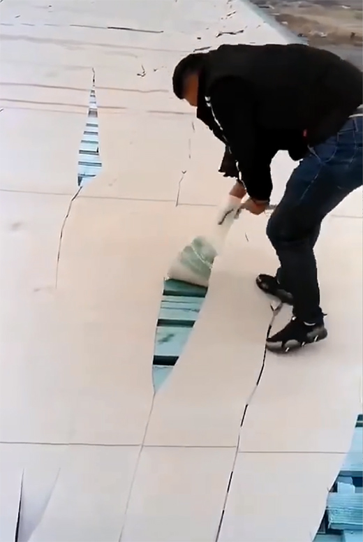 哈爾濱某項(xiàng)目PVC屋面經(jīng)歷冰雹襲擊后的照片