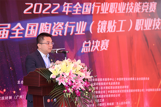 2022年12月15日,由中國輕工業(yè)聯(lián)合會(huì)、中國陶瓷工業(yè)協(xié)會(huì)、中國就業(yè)培訓(xùn)技術(shù)指導(dǎo)中心、中國財(cái)貿(mào)輕紡煙草工會(huì)全國委員會(huì)主辦,中國陶瓷工業(yè)協(xié)會(huì)瓷磚粘貼技術(shù)專業(yè)委員會(huì)聯(lián)合東方雨虹承辦的第八屆全國陶瓷行業(yè)(鑲貼工)職業(yè)技能競(jìng)賽總決賽在廣東佛山隆重召開。東方雨虹民建集團(tuán)華南區(qū)兩廣片區(qū)總經(jīng)理蔡毅出席開幕式并致辭。