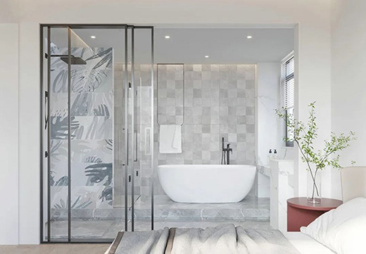 羅曼締克旨在鑄造室內(nèi)空間漫不經(jīng)心的美,匯入潮流色彩、注入高級(jí)質(zhì)感、用凸凹模具的巧妙手法,讓搭配不拘一格。拼接鋪貼更添了一絲新穎,看似簡(jiǎn)單卻暗含繁復(fù),既有差異美感,又有留白藝術(shù)。