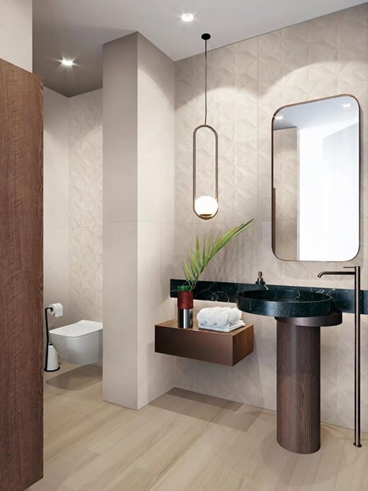 3D激光精雕模具與先進(jìn)釉面技術(shù)、仿古等多重工藝結(jié)合,釉面肌理效果突出、色彩自然,加倍提升瓷磚表面質(zhì)感。以每個(gè)執(zhí)著工藝的瞬間為居者打造高級(jí)、靜謐的自然居所。