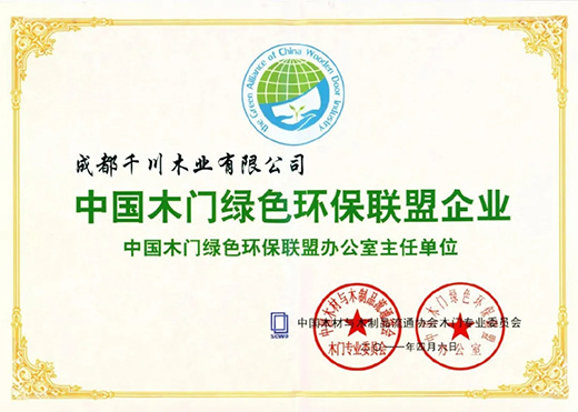 千川木門作為綠色環(huán)保理念的堅(jiān)定踐行者,是首批加盟中國木門綠色環(huán)保聯(lián)盟企業(yè)成員單位,2011年被授予“中國木門綠色環(huán)保聯(lián)盟辦公室主任單位”稱號,為推行木門行業(yè)綠色產(chǎn)業(yè)化起到積極的作用。