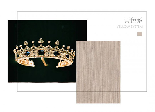 這里的黃色并非指純正的黃色,而是作為黃色色系中的一種衍生色——原木色,它有著木頭原始的色彩,自然而溫暖,家正是溫暖的化身,黃色系也是一種榮耀的象征,中國(guó)的龍袍,西方的皇冠,是世人眼里的財(cái)富,溫暖的家,是誰(shuí)都想擁有的財(cái)富。