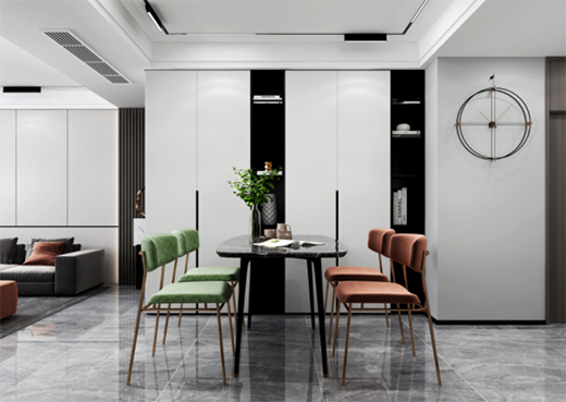現(xiàn)代風格外形簡潔,強調(diào)室內(nèi)空間形態(tài)和物件的單一性、抽象性,在室內(nèi)設計方面,不是要放棄原有空間的規(guī)矩和樸實。