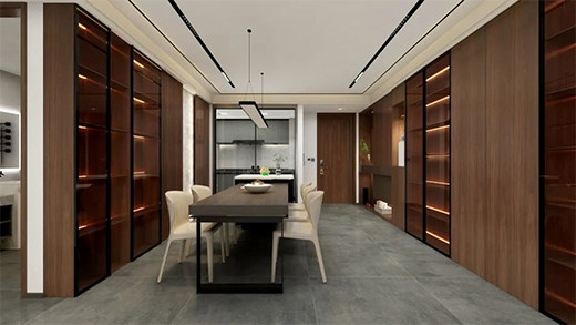 【極窄推拉門(mén)16系列】與室內(nèi)門(mén)平行分割空間,不僅有效隔絕廚房油煙外延,也為餐廳帶來(lái)明亮的采光。沐浴朝陽(yáng)與晚霞,與家人共享一日三餐的幸福。