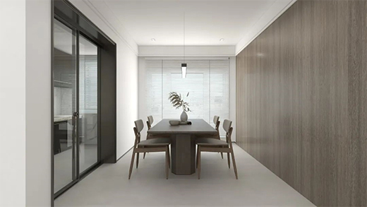 選用【極窄推拉門(mén)1606系列】打破密閉空間帶來(lái)的閉塞之感,至尊雅致的黑色為環(huán)境塑造沉穩(wěn)基調(diào),安坐其中闊視生活,帶來(lái)不凡心境。原木色系整墻與餐桌搭配,協(xié)調(diào)整個(gè)家居的侘寂風(fēng)格,讓你目光所及,以簡(jiǎn)見(jiàn)大。