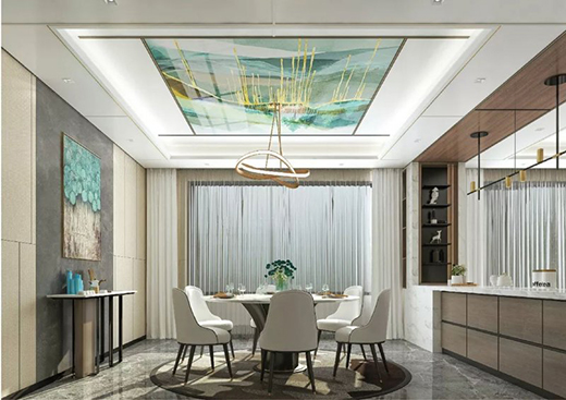 從設(shè)計(jì)美學(xué)上講,設(shè)計(jì)師都喜歡無(wú)接縫的材料,容聲大板2700×1220mm的身材足夠大氣,同樣面積的空間里相比傳統(tǒng)規(guī)格大板接縫更少,更能體現(xiàn)空間的整體感和統(tǒng)一性,也能避免藏污納垢。容聲定制大板中有中國(guó)風(fēng)氣息的山水風(fēng)景畫(huà)、抽象水墨畫(huà)、工筆花鳥(niǎo)等系列,幾筆水墨便畫(huà)出整個(gè)場(chǎng)景,水墨紋理交融,細(xì)細(xì)品味,正符合中國(guó)畫(huà)論中“妙在似與不似之間”。