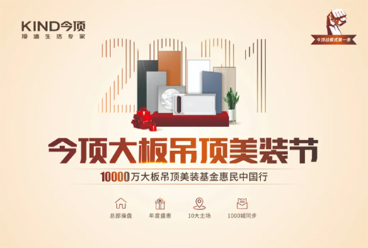 為了回饋全國消費(fèi)者,今頂公司總部攜手全國1000家門店,派發(fā)億元大板消費(fèi)基金,讓優(yōu)質(zhì)的今頂大板吊頂普惠更多家庭!