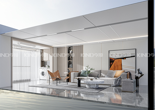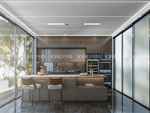 其采用天然材質(zhì),天然植物秸稈、原木纖維、鈣鹽為主要成分,環(huán)保無醛。并搭載今頂自主研發(fā)的Klive美學(xué)燈光線條系統(tǒng),并采用干式快裝的方式,不僅能打造更溫馨的氛圍,并且裝修效率更高,安裝完無需散味,即刻入住。
