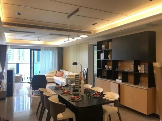 相比分體式空調(diào),中央空調(diào)控溫更加精確、能耗表現(xiàn)更好,且隱藏式安裝的特點也跟符合現(xiàn)代家居的審美標(biāo)準(zhǔn),目前家用中央空調(diào)產(chǎn)品已可以匹配大部分戶型需求,未來,伴隨著人們生活水平的提高以及對居家舒適度的重視, 越來越多的家庭也將更傾向于選擇中央空調(diào)。而中央控空調(diào)的內(nèi)機(jī)需要與吊頂結(jié)合隱藏,所以如何巧妙地設(shè)計客餐廳的吊頂,讓內(nèi)機(jī)與天花造型融為一體就顯得格外的重要了。