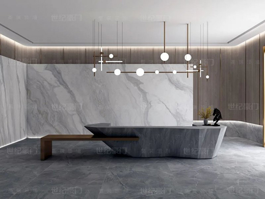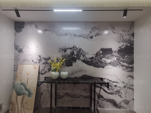 世紀豪門吊頂·墻面:超薄人造石數(shù)碼巖板實現(xiàn)隱形縫效果