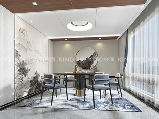 中國人自古便情有獨鐘圓形造型,象征著一家人圓圓滿滿。今頂小圓頂便以此寓意進行研發(fā)的。在中秋節(jié),一家人團聚的時候,餐廳的圓形吊頂便尤其應景。