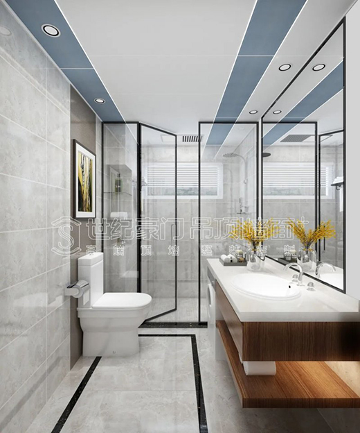 與常規(guī)鋁扣板相比,天境系列大板不需要太多的拼接,從視覺上看,間隙減小了,并且整體空間感和時(shí)尚感更強(qiáng)。
