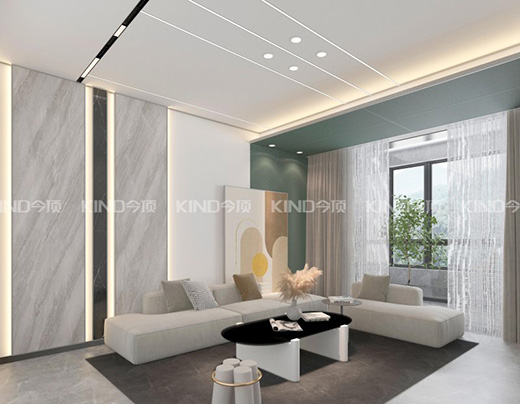 如以今頂石膏白大板作為主色調(diào)可顯示出典雅和高貴。用其他跳色作為點(diǎn)綴,則反應(yīng)出主人熱情好客的態(tài)度。