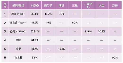對(duì)比西門(mén)子、博世、三星、大金等品牌的市場(chǎng)占有率,卡薩帝以絕對(duì)的優(yōu)勢(shì)拿下全國(guó)第一。