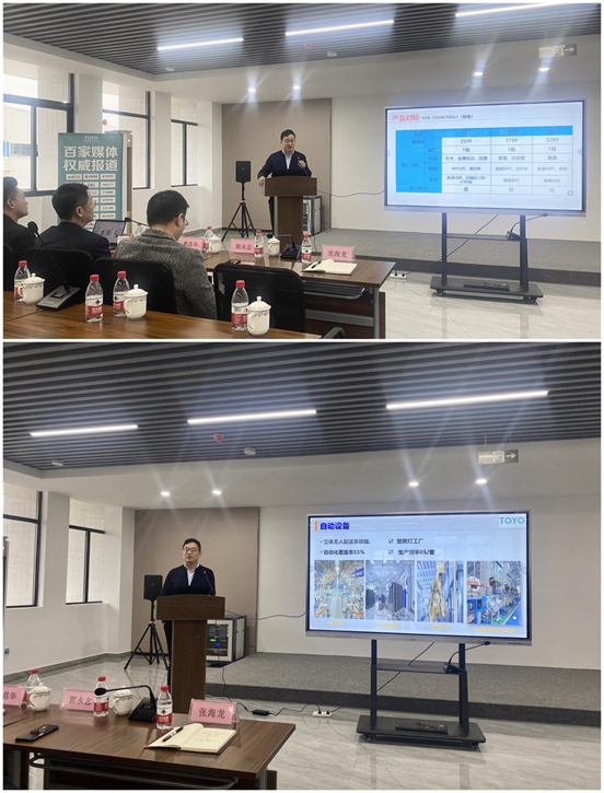 奮斗正當時,攜手書未來。中午,來自廣東的客人們在TOYO空調(diào)事業(yè)部制造總監(jiān)李良斌的帶領下,前往參觀TOYO東洋空調(diào)智能工廠和二期一樓展廳。