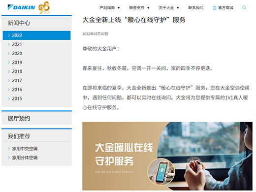 - 服務(wù)模式再升級,大金空調(diào)全新上線“暖心在線守護”服務(wù) - 2022/05/09