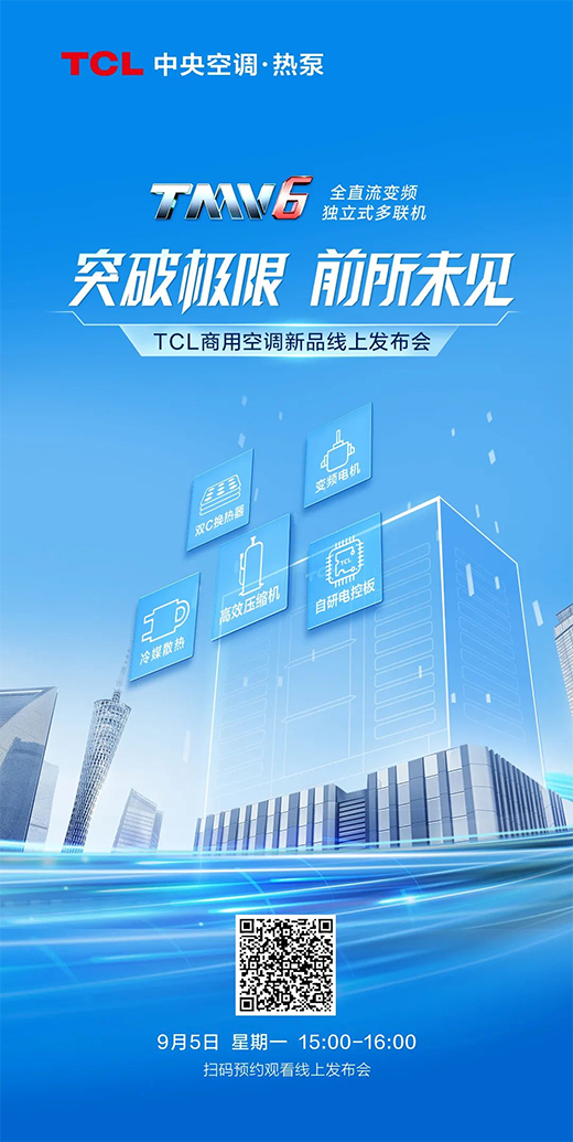 隨著市場消費主體和消費需求的不斷更新迭代,如何打造更舒適、更智能、更便捷的空氣調節(jié)解決方案成為行業(yè)的大勢所趨。TCL商用空調自2003年進入中央空調領域開始,從未停止前進創(chuàng)新的步伐,始終堅持用科技創(chuàng)新響應用戶需求,打造綠色智慧空間。此次新品發(fā)布,將以“突破極限,前所未見”為主題,于9月5日全球線上首發(fā),敬請期待!