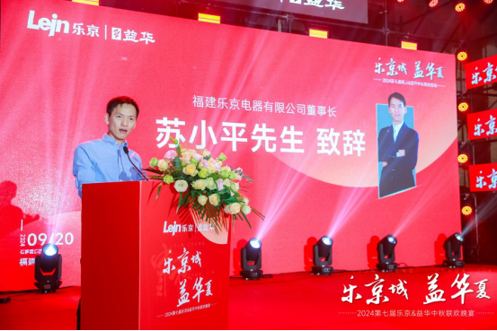 在吳總致辭結(jié)束后,福建樂京電器有限公司董事長蘇小平走上舞臺,向全體來賓致以誠摯的問候和祝福,并表達了對福建樂京未來發(fā)展的信心和期待。他強調(diào),樂京空調(diào)以卓越品質(zhì)和貼心服務(wù)獲認可,離不開代理商的努力。今天的晚宴是對過去的肯定和未來的期許,交流經(jīng)驗,探討未來發(fā)展之路,福建樂京將秉持高品質(zhì)標準,創(chuàng)新服務(wù)模式,為消費者帶來更好體驗。