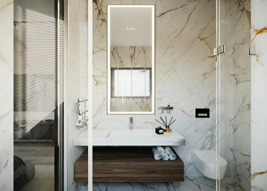 冷色調的巖板和大理石是浴室必不可少的元素,質感堅實,更顯潔凈。