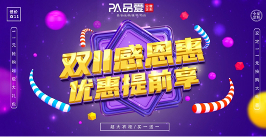 一年一度的“雙十一”購物狂歡節(jié)即將到來。作為“中國十大全屋定制品牌”,品愛全屋定制推出“雙11感恩惠”活動,優(yōu)惠力度之大,前所未有。一場全民狂歡的家居盛宴即將開啟!
