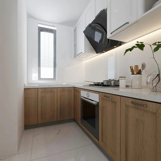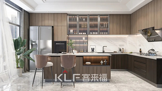 客來福多款廚房設(shè)計很好地融合了中廚和西廚,既可以實現(xiàn)爆炒煎炸和燒煮,還可以制作精致的西式冷餐和醇香咖啡,滿足全家人的口味。