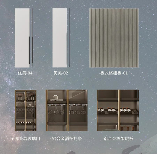 展示柜內(nèi)置酒杯掛條和紅酒架層板。