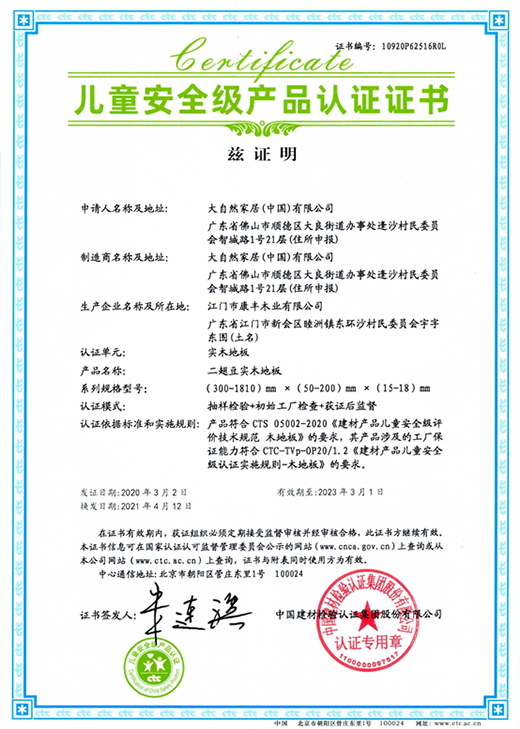 (大自然木地板獲得兒童安全級產(chǎn)品認證)