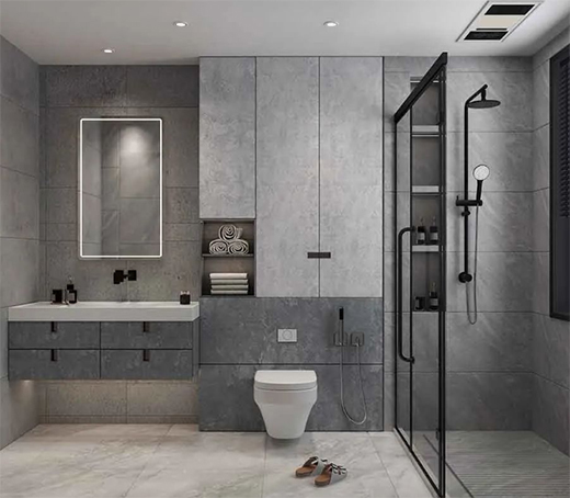 衛(wèi)浴室回歸至簡至美的純粹,干凈利落的高級,“凈”與“靜”的造境,是對生活晶位的宣言,放下所有的浮華與躁動,讓心靈輕松釋放。