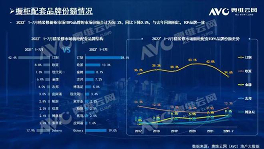 受到疫情反復、購房需求萎縮、短期政策調整等因素影響,房地產市場降溫已經(jīng)一年多的時間。奧維云網(wǎng)(AVC)數(shù)據(jù)監(jiān)測顯示2022年1-7月精裝修項目1116個,同比下降41.1%;精裝修套數(shù)83.47萬套,同比下降47.8%。其中7月新開盤項目181個,同比下降32.2%;精裝修套數(shù)13.45萬套,同比下降38.2%,市場尚未迎來回暖期。櫥柜是必不可少的家居生活產品,下面我們來看下它在精裝市場的表現(xiàn)如何。