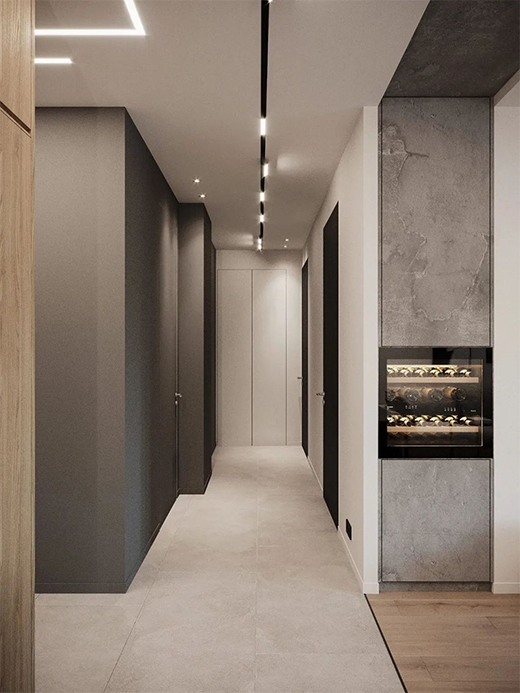 隱形踢腳線設(shè)計(jì),加強(qiáng)空間視覺(jué)的統(tǒng)一性,強(qiáng)化空間風(fēng)格。