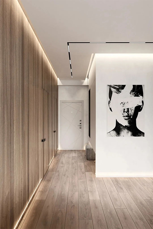 隱形門設(shè)計(jì)也是近年趨勢(shì)。門墻柜一體設(shè)計(jì),同色同質(zhì),空間整體性更強(qiáng),空間延伸性更廣,加之極簡(jiǎn)的設(shè)計(jì),不用過(guò)分裝飾就能展示空間原本的美感。