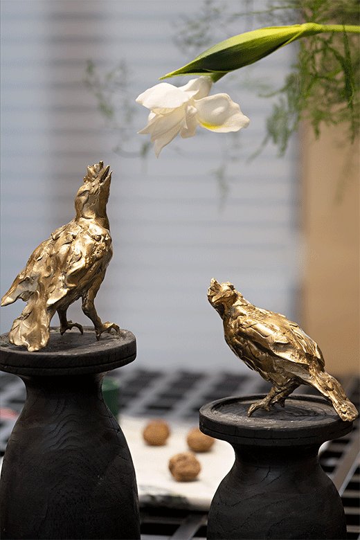 渾然天成的翡翠綠大理石,鋪陳水吧臺(tái)與展示架自然靈動(dòng)的樣貌,厚重的體量感使其呈現(xiàn)雕塑般的美感,細(xì)膩的肌理表達(dá)空間的寧靜與悠遠(yuǎn) ,自然的藝術(shù)在此發(fā)揮的淋漓盡致。