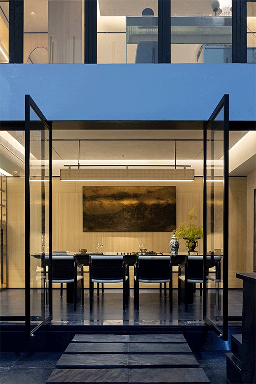 在這套五層別墅中,設(shè)計(jì)師提取東方美學(xué),重構(gòu)室內(nèi)感官體驗(yàn),并堅(jiān)持以人與自然共生的設(shè)計(jì)哲學(xué),將地域人文融入日常空間中,構(gòu)筑人與自然的和諧關(guān)系,使住戶能在現(xiàn)代化的城市語境中享受“出則繁華,入則悠然"的自然詩意生活。
