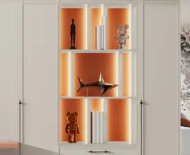 嵌入開放展示柜與置物抽屜