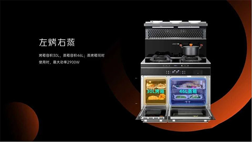 優(yōu)格左烤右蒸集成灶,選擇用科技來滿足美食達(dá)人們的下廚樂趣,雙腔獨(dú)立,蒸烤同步。