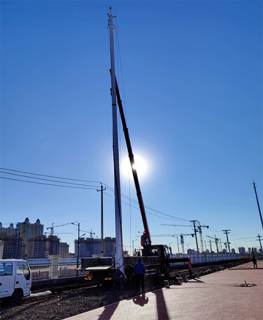安裝中的室外足球場(chǎng)高桿燈 因此,本次室外的足球場(chǎng)燈光項(xiàng)目選用惟亞蒂自主研發(fā)生產(chǎn)的TLU系列500W球場(chǎng)高桿燈共計(jì)36套,經(jīng)過專業(yè)配光設(shè)計(jì)和科學(xué)燈光布局,采用兩側(cè)布燈的方式,保證了整體場(chǎng)地良好的照明效果。最大限度減少眩光和光污染,達(dá)到了行業(yè)照明標(biāo)準(zhǔn)的一級(jí)要求,符合客戶的實(shí)際使用需求。