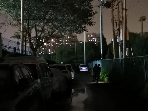 5月31日晚上,記者來到首都體育學(xué)院西路,狹窄的道路看起來十分昏暗。雖然路西側(cè)有商場的照明燈,但是幾乎照不到首都體育學(xué)院西路上。往來的不少行人都打開了手機(jī)上的手電筒,才能勉強(qiáng)看清腳下的路。