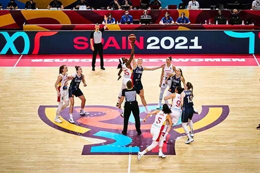 ▲女籃歐洲杯·洲明體育LED場邊廣告屏