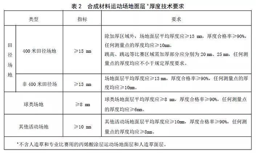 (2)為了保證合成材料面層運(yùn)動(dòng)場地能達(dá)到相應(yīng)的安全保護(hù)性能和耐用性能,本標(biāo)準(zhǔn)結(jié)合現(xiàn)行國家標(biāo)準(zhǔn)和國際標(biāo)準(zhǔn),對(duì)面層厚度作出如下要求: