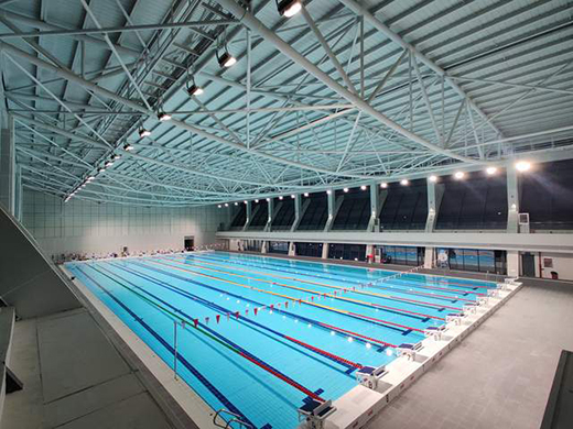 2021年10月底,云南昆明海埂體育訓(xùn)練基地游泳館項目按時保質(zhì)完成交付。作為重要訓(xùn)練基地的新游泳館,由七大洲提供299W 球場燈,根據(jù)標準要求設(shè)計,在高度14.5米處進行安裝。當燈具開啟后,游泳館的平均照度達到500LUX,滿足專業(yè)比賽的要求。