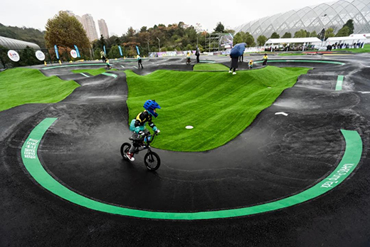 泵道是一項國際新潮體育運動,于2008年北京奧運會BMX小輪車被正式列入比賽項目,2020東京奧運會上再次列入比賽項目。這項運動是運動員在波浪起伏的環(huán)形賽道上,實現(xiàn)動能和勢能的來回轉(zhuǎn)換。支持使用自行車、滑板、平衡車等10多種器材進行運動。