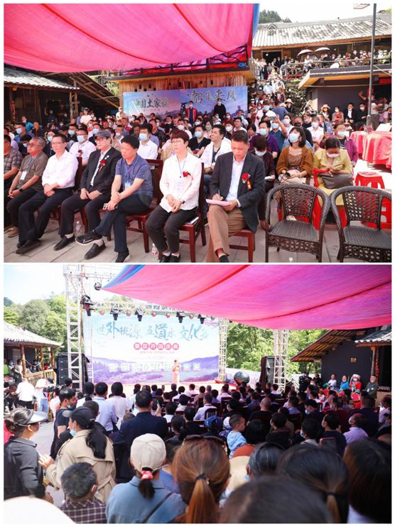 現(xiàn)場賓客云集,當(dāng)?shù)靥厣幕硌葸B綿不絕,這是世外桃源五道水文化谷景區(qū)對各位到場嘉賓支持的感恩。在欣賞歌舞表演后,開園慶典進(jìn)入產(chǎn)業(yè)融合發(fā)展座談會和鄉(xiāng)村振興共享共創(chuàng)分享環(huán)節(jié)。