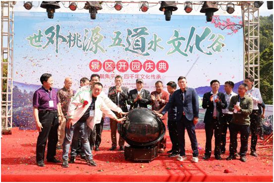 在一片熱鬧的氛圍中,各位嘉賓一同上前進(jìn)行剪彩,霎時禮炮齊鳴,人聲鼎沸。至此,世外桃源五道水文化谷景區(qū)開園慶典正式啟動。