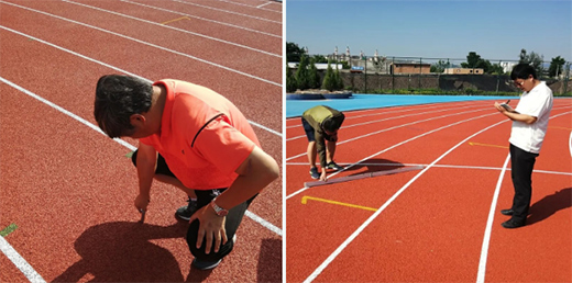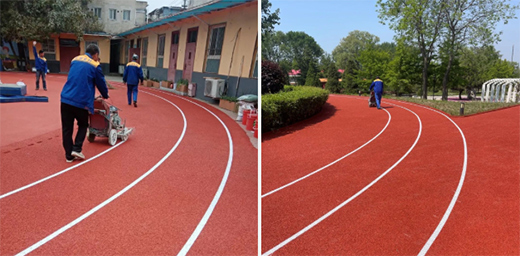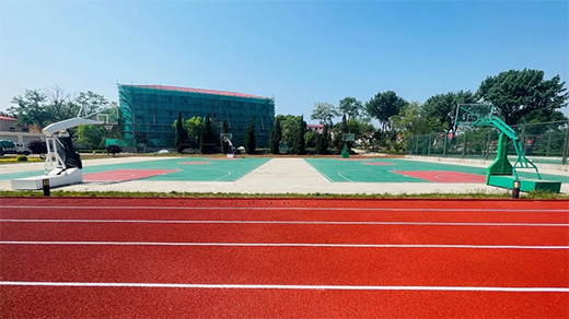 基層處理 → 底涂涂布 → 底層配料和攪拌 → 底層攤鋪 → 固化 → 面層配料和攪拌 → 面層噴涂→ 固化 → 測(cè)量劃線 → 檢測(cè)點(diǎn)線 → 竣工驗(yàn)收交付。