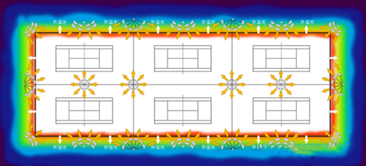 散發(fā)式布光方式在原有布燈位置、燈桿高度的有限條件下,七大洲研發(fā)人員及設(shè)計(jì)人員結(jié)合現(xiàn)有照明問(wèn)題,深入探討,根據(jù)網(wǎng)球場(chǎng)特性,敲定并選用型號(hào)為QDZ-300B、高光效的進(jìn)口SMD光源燈具。高新科技的芯片優(yōu)勢(shì)明顯,在球場(chǎng)上見(jiàn)光不見(jiàn)芯,光照均勻;照度達(dá)國(guó)家3級(jí)照明標(biāo)準(zhǔn),滿足專業(yè)比賽照明要求,這極大解決了眩光、刺眼、照明昏暗等影響球手對(duì)網(wǎng)球運(yùn)動(dòng)軌跡判斷的問(wèn)題,為運(yùn)動(dòng)員營(yíng)造了健康舒適的光環(huán)境。