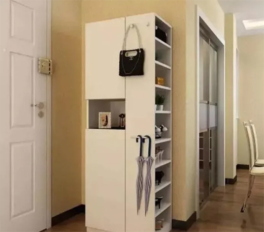 一般鞋柜層板跟背板都是連接起來的,但是如果保持層板和背板中留有一點(diǎn)空隙,那么一般灰塵之類的東西就可以直接落到最底層,打掃起來就更方便了