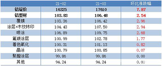 大瀝·中國全鋁家居 2021年3月家居鋁型材價(jià)格指數(shù)明顯上漲!